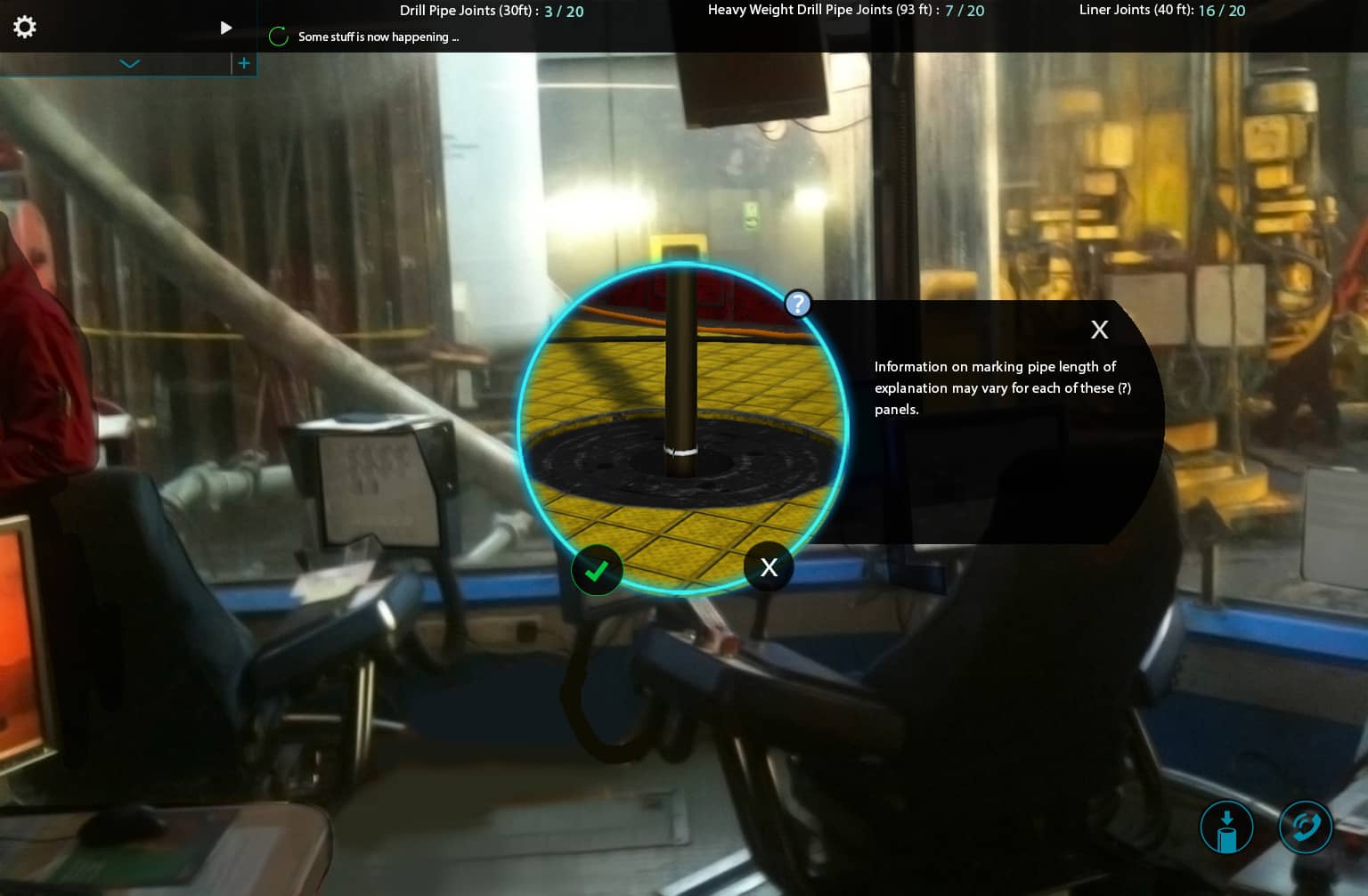 Bridge the knowledge gap for new hires in oilfield industry by creating an interactive, immersive training platform which allows them to practice real-life drilling operations using a laptop or three-screen workstation.